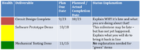- Fill out table with Deliverables for entire semester. These can be taken from Project Plan in EDN Gantt chart.