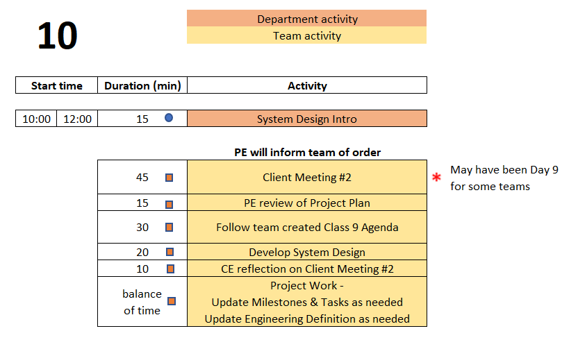 These tasks should be completed before next on-site meeting (Day 11)