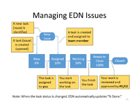 Issues have a status in EDN. Status changes follow a configured "workflow" intended to mimic how issues should be properly handled.